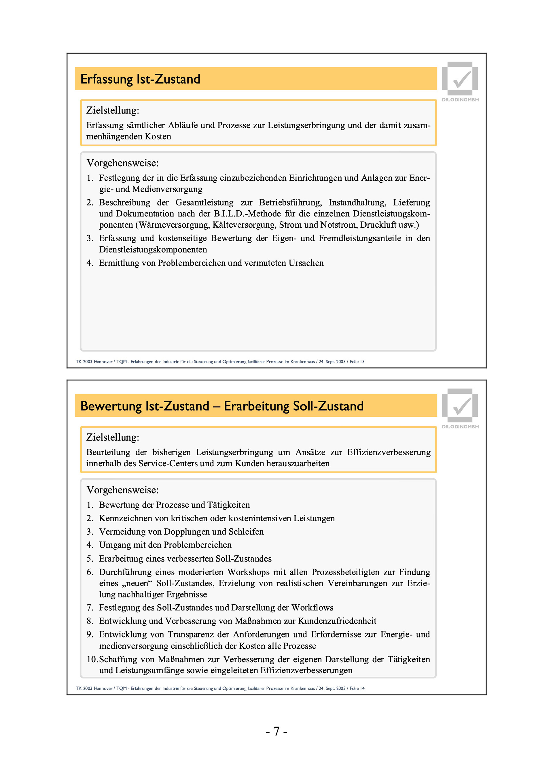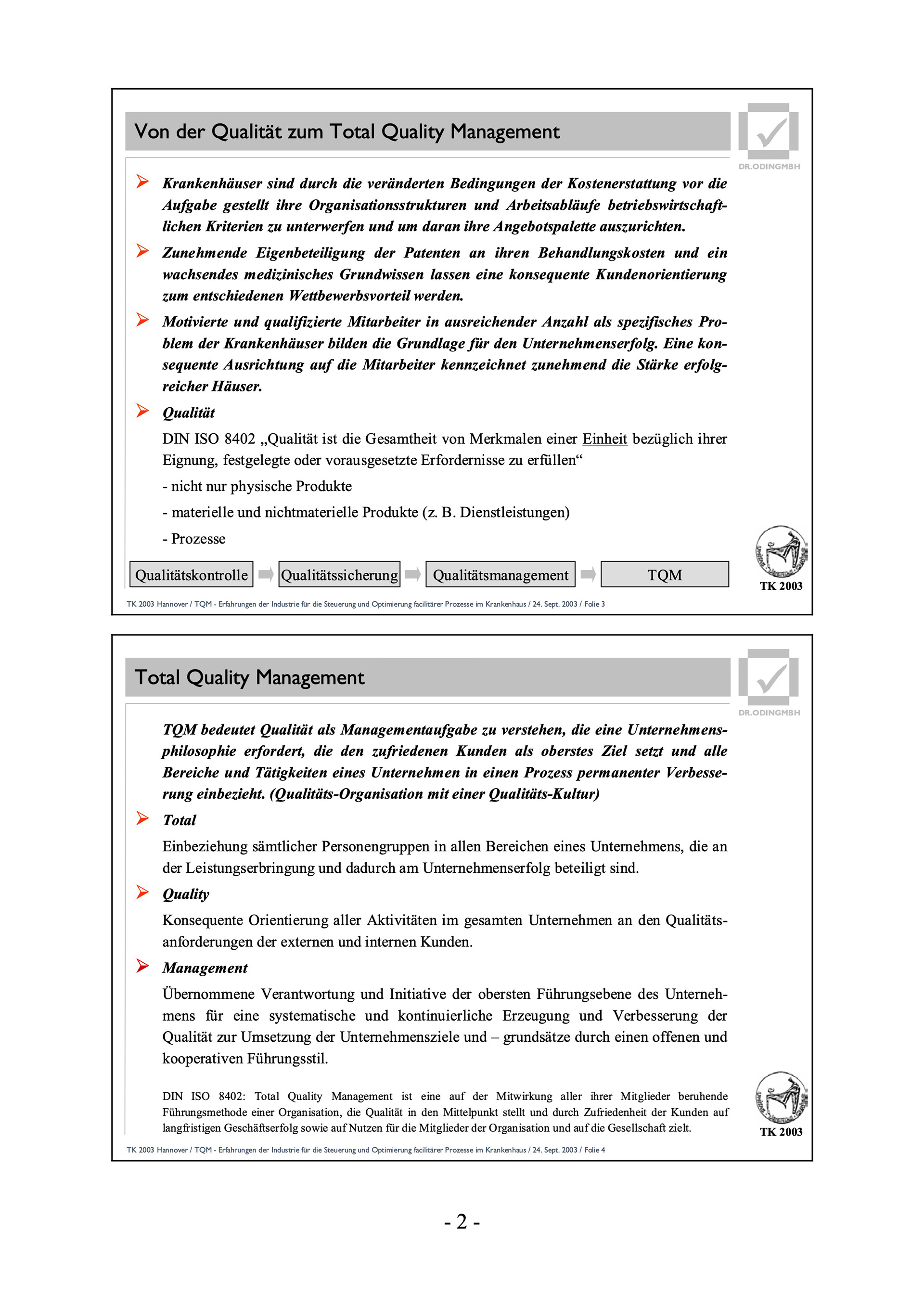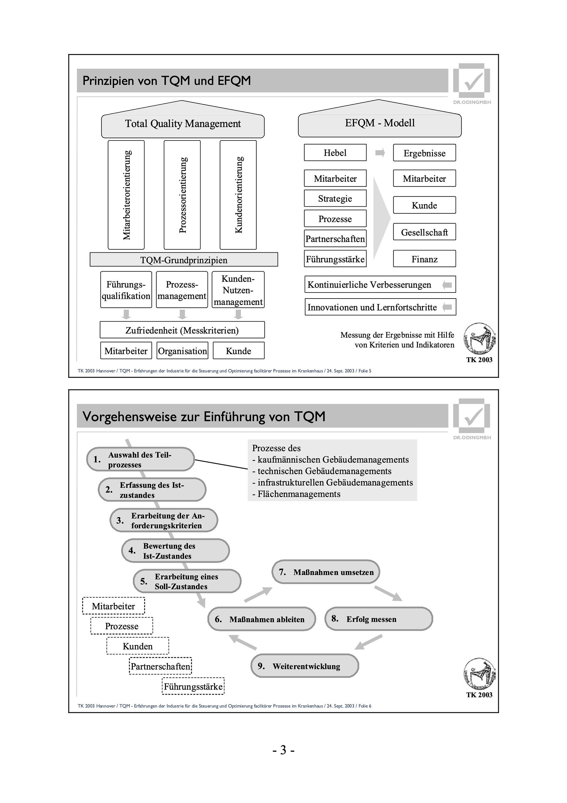 TK 2003 Hannover / TQM - Erfahrungen der Industrie für die Steuerung und Optimierung facilitärer Prozesse im Krankenhaus / 24. Sept. 2003