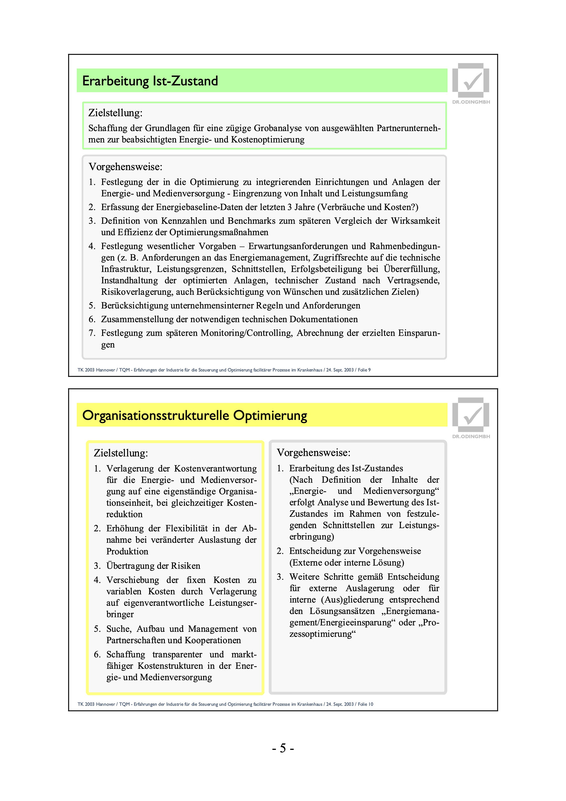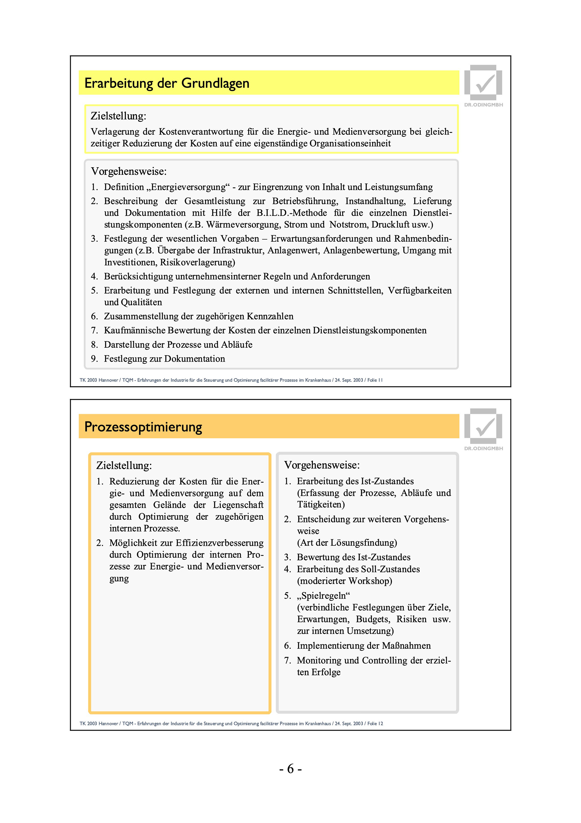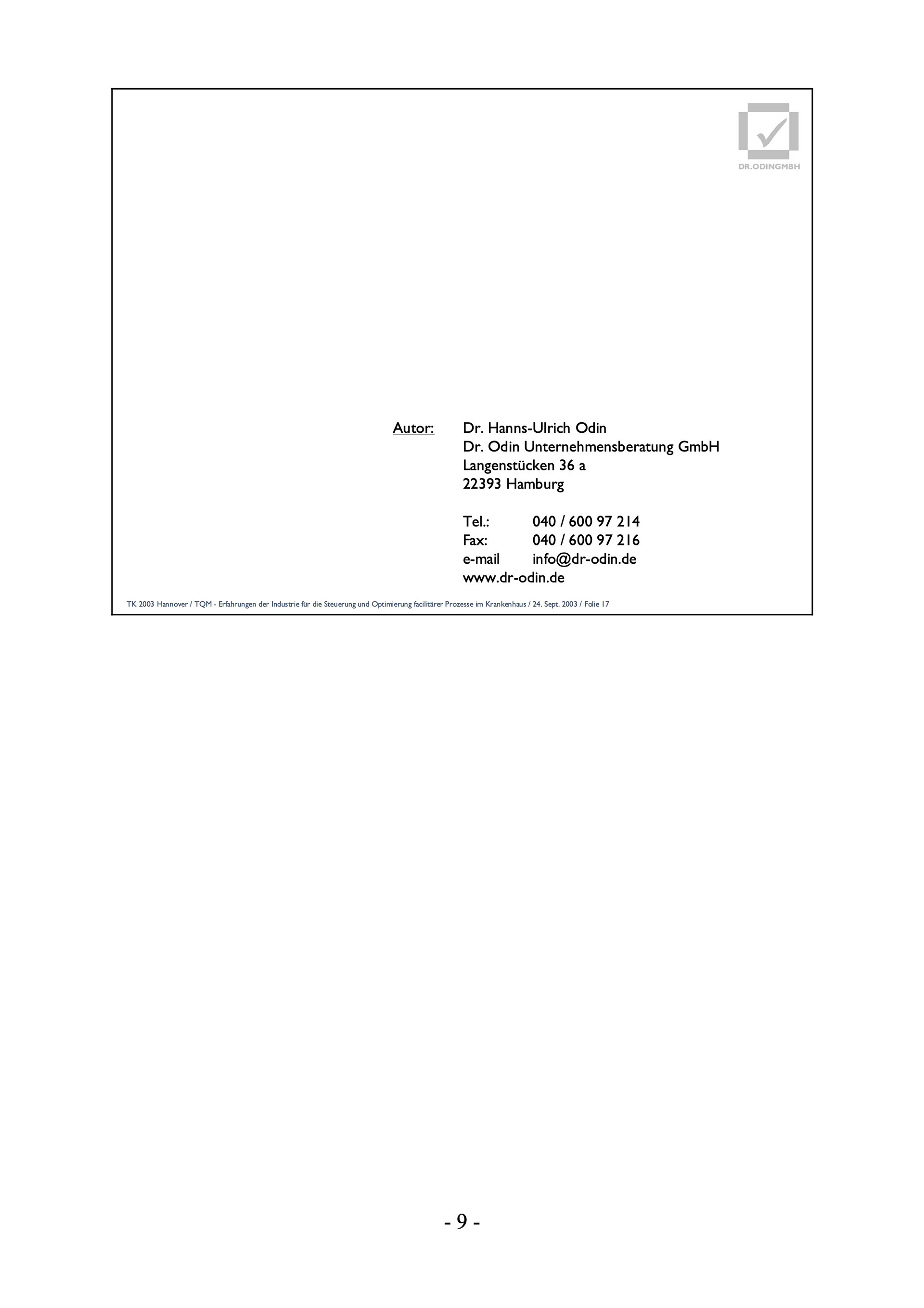 TK 2003 Hannover / TQM - Erfahrungen der Industrie für die Steuerung und Optimierung facilitärer Prozesse im Krankenhaus / 24. Sept. 2003