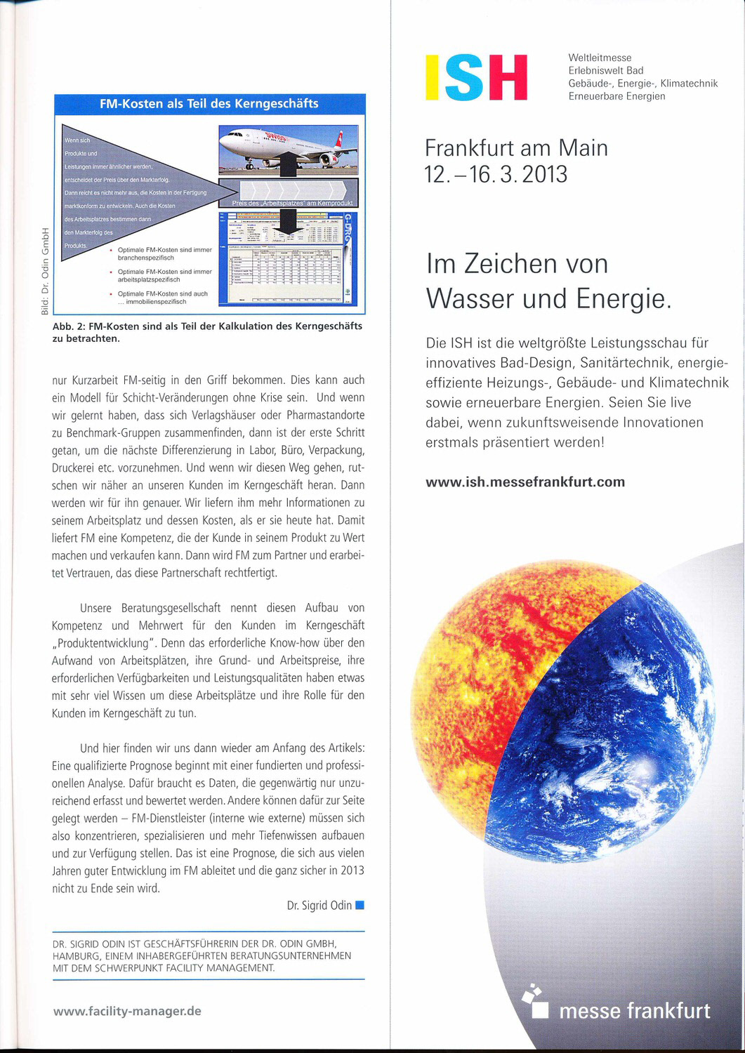 Tiefenwissen aufbauen und zur Verfügung stellen Dr. Sigrid Odin, Dr. Odin GmbH, wagt für „Der Facility Manager" einen Ausblick auf das FM-Jahr 2013.