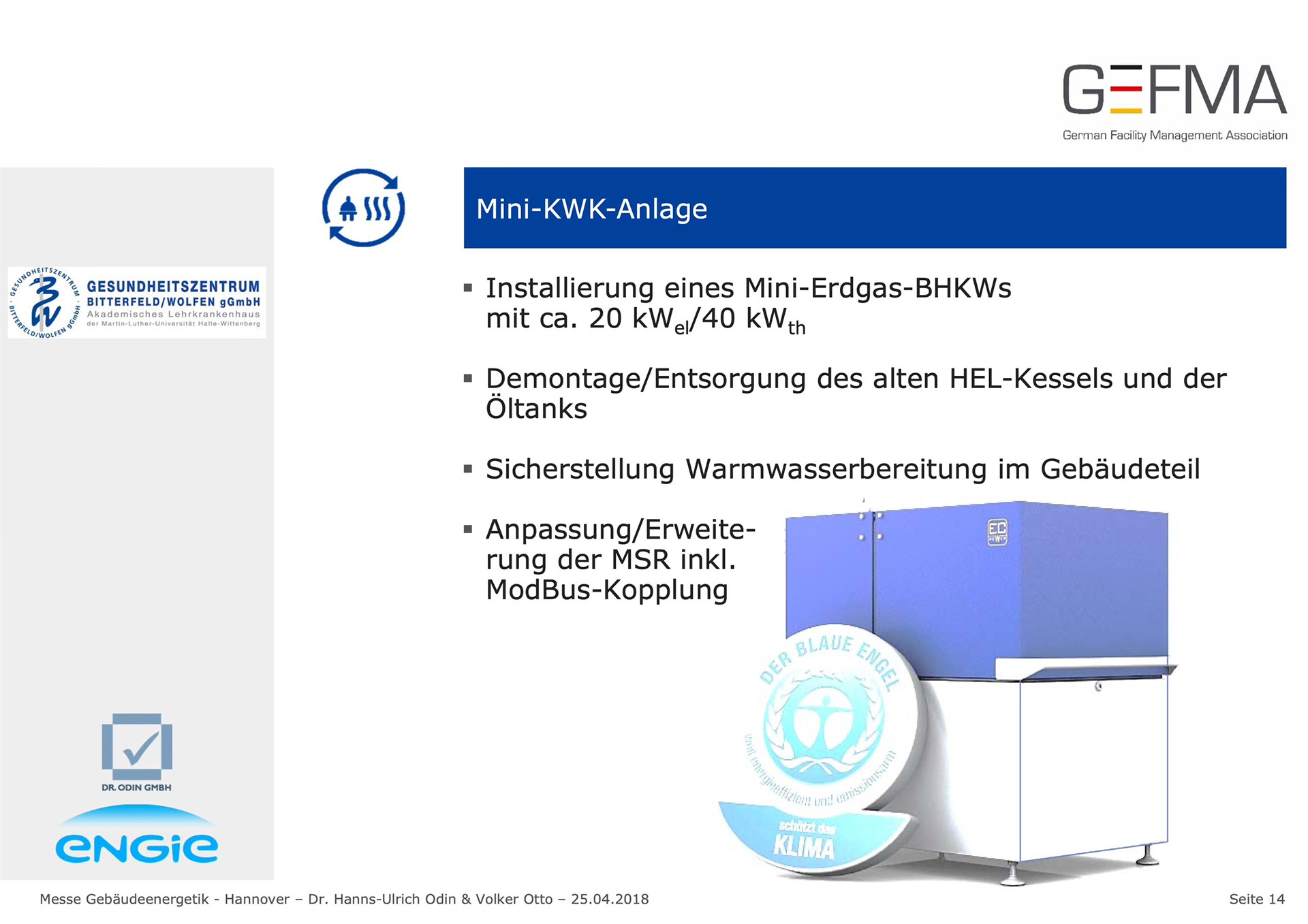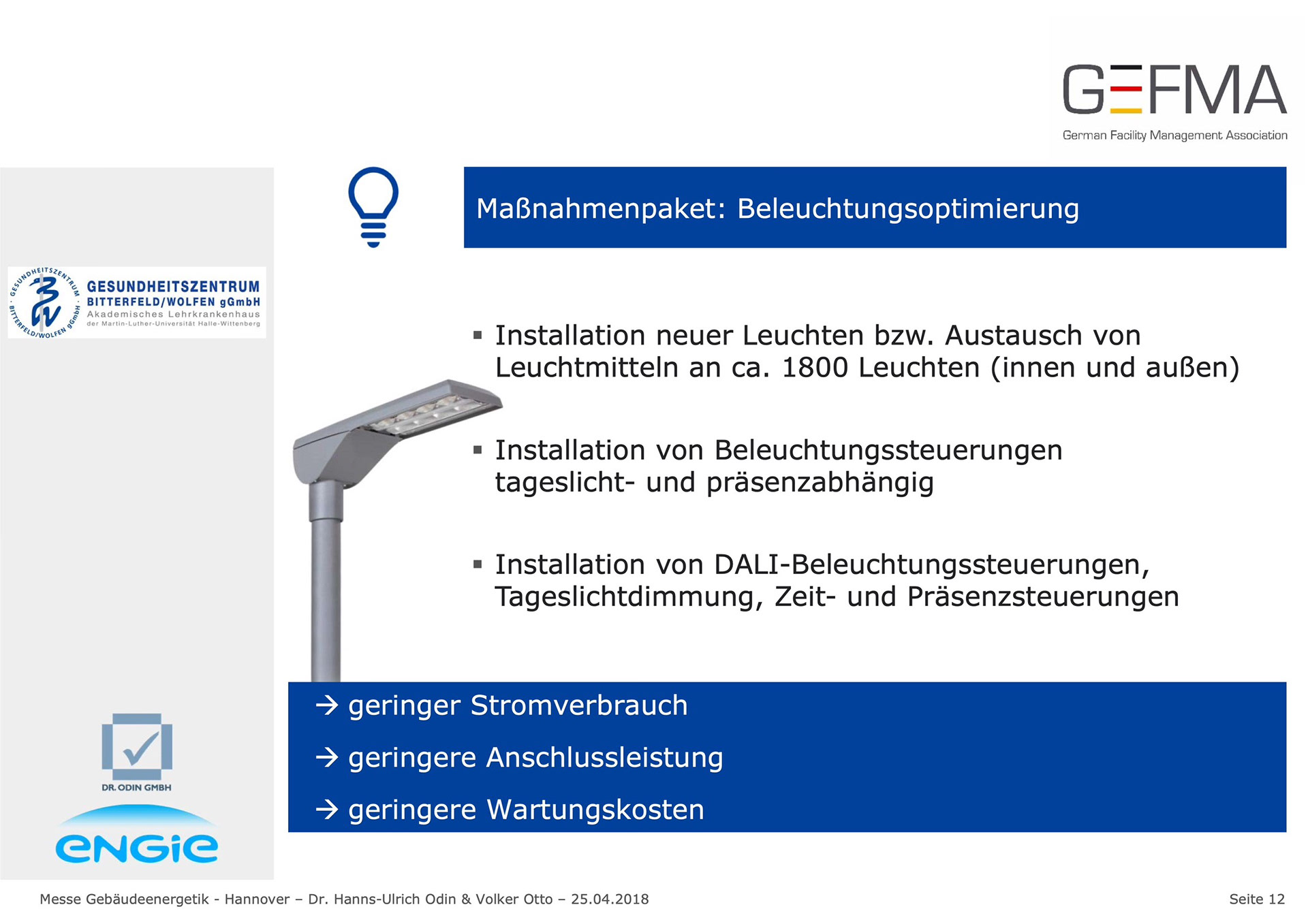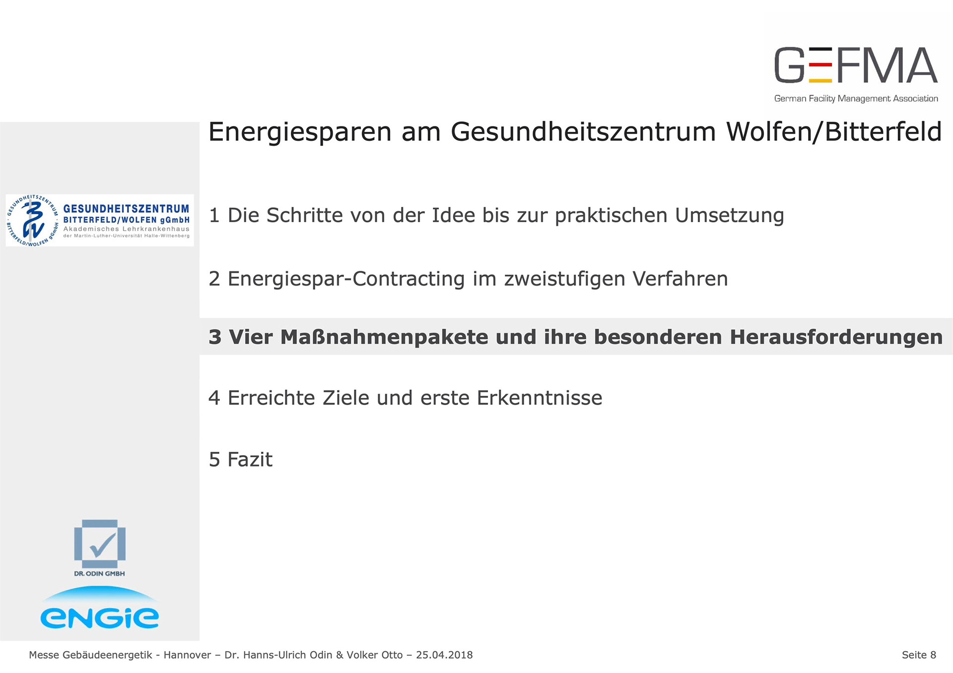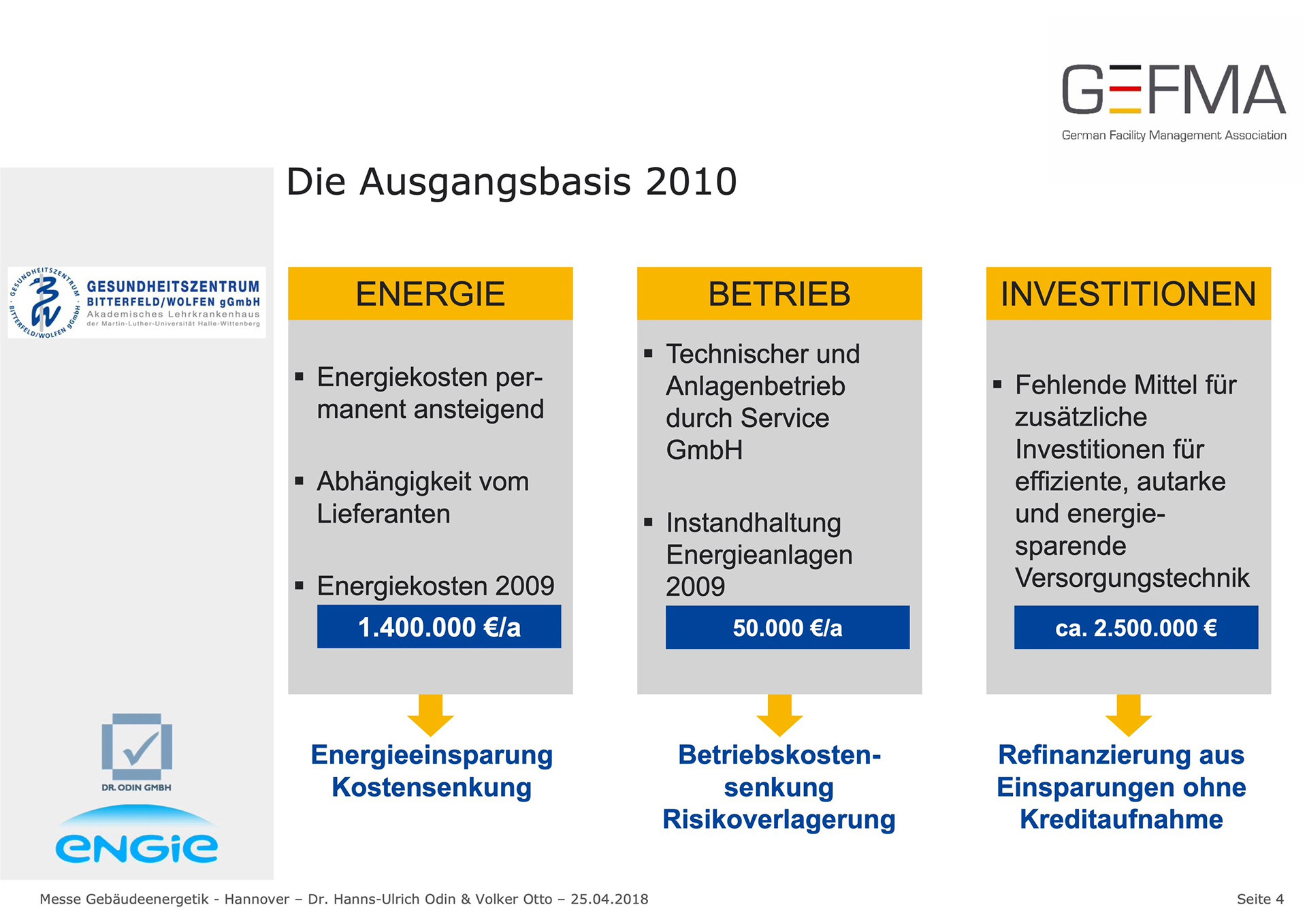 Hannover Messe 25.04.2018 Gebäudeenergetik Fachvortrag zum Energiespar-Contracting Hanns-Ulrich Odin, Geschäftsführer, Dr. Odin GmbH & Volker Otto, Niederlassungsleiter Facility Services Dresden, ENGIE Deutschland GmbH