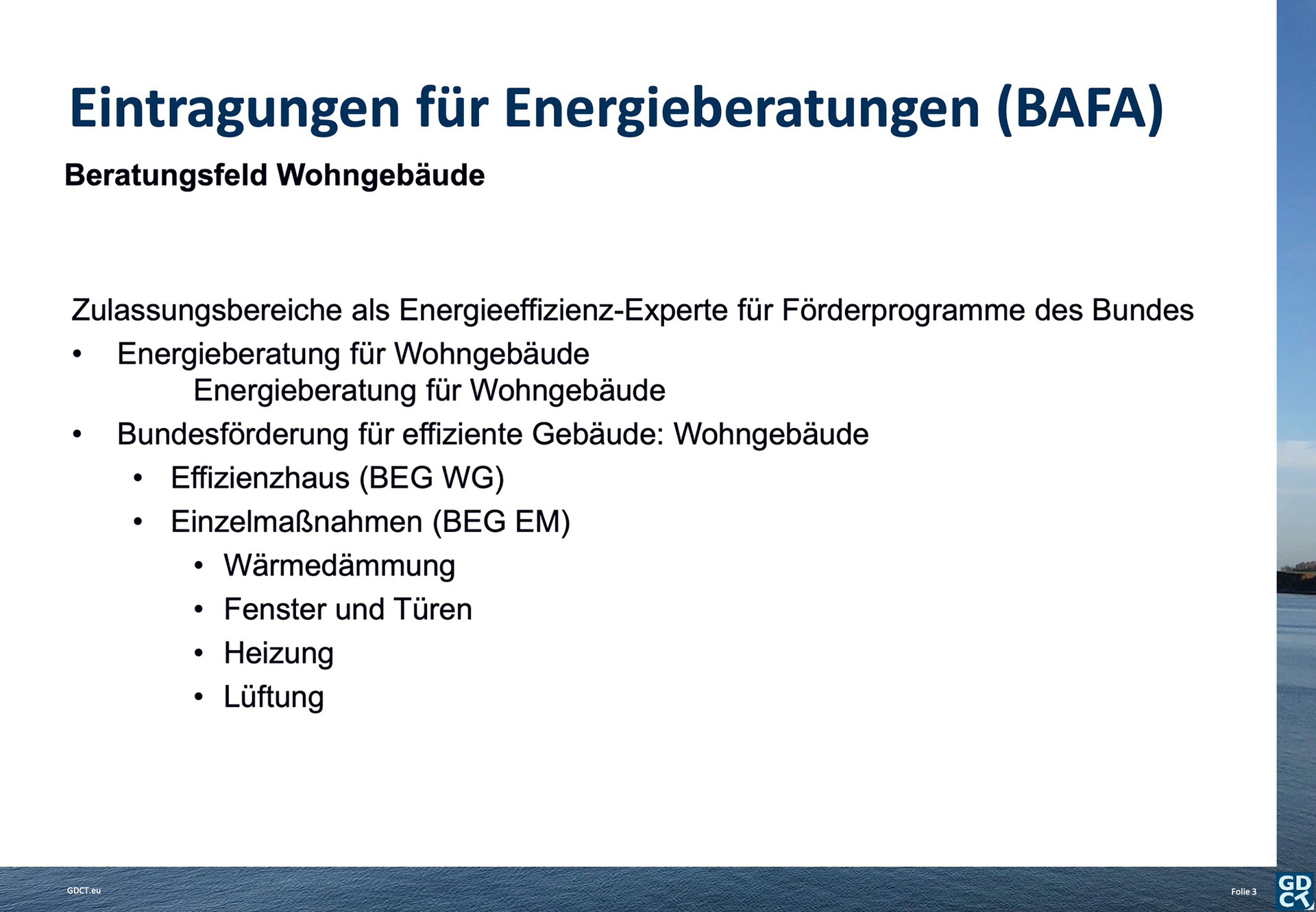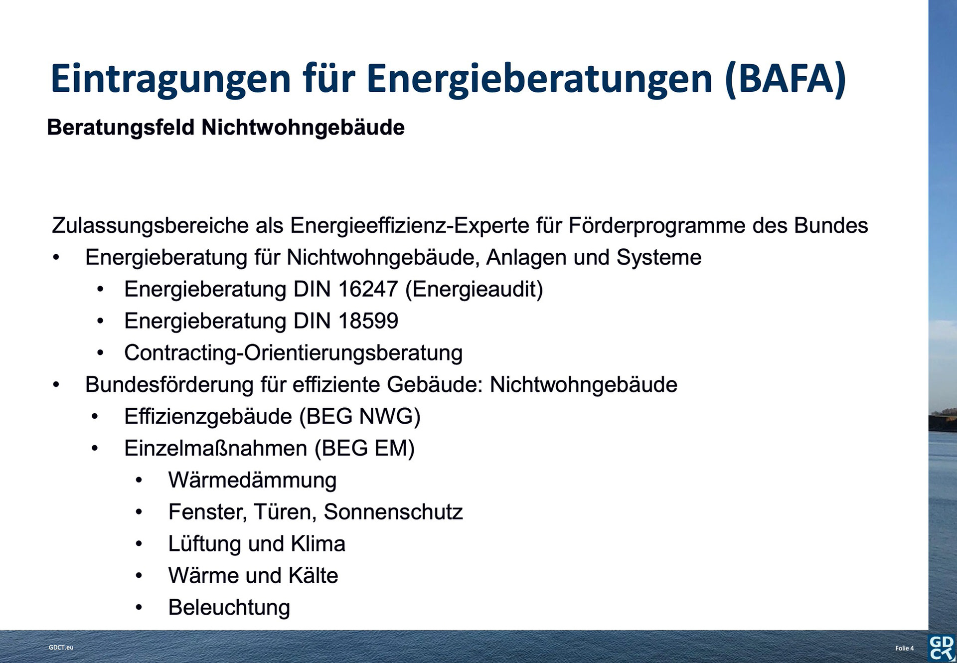 Themenfelder sowie Zulassungsbereiche als Energieeffizienz-Experte für Förderprogramme des Bundes