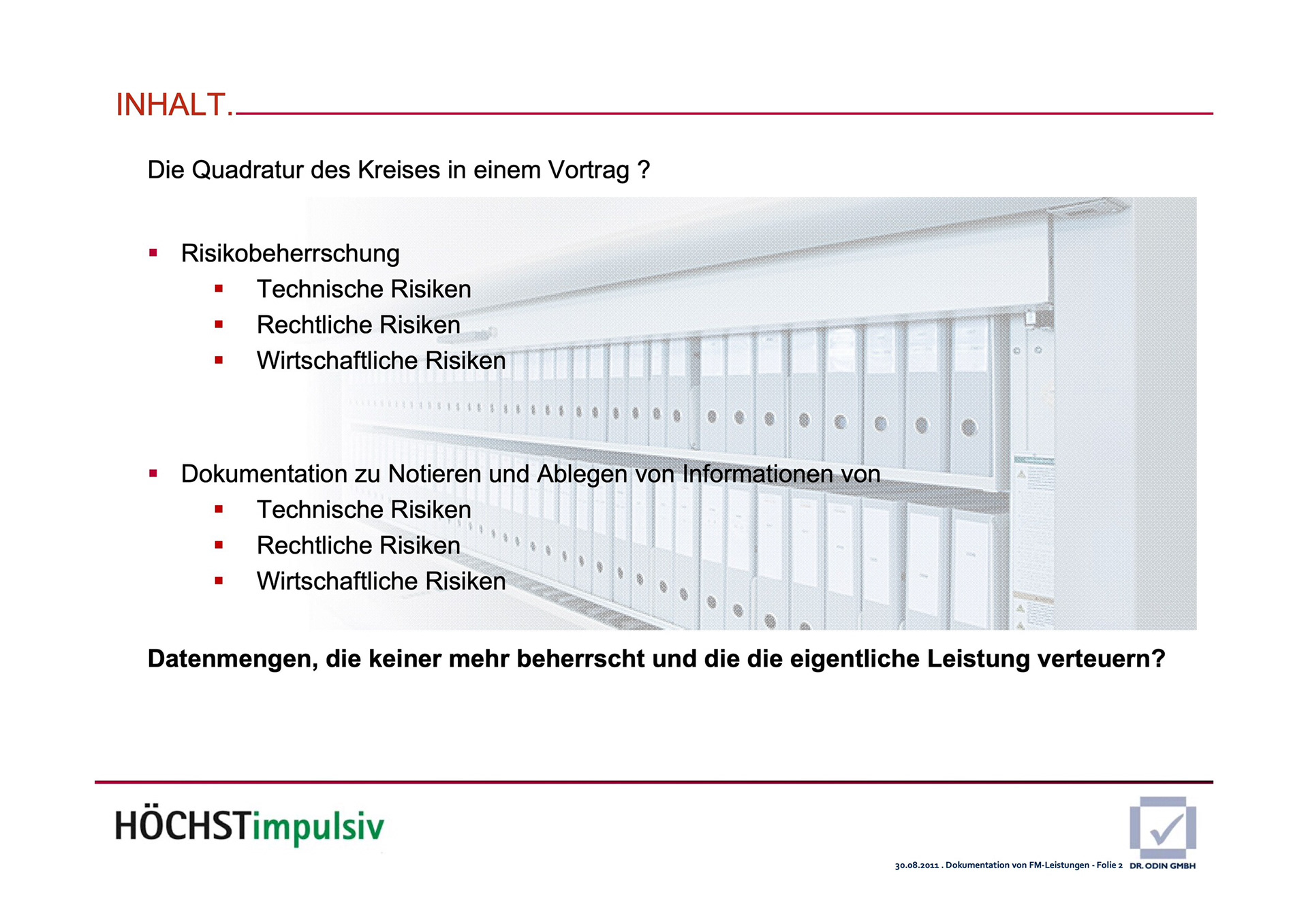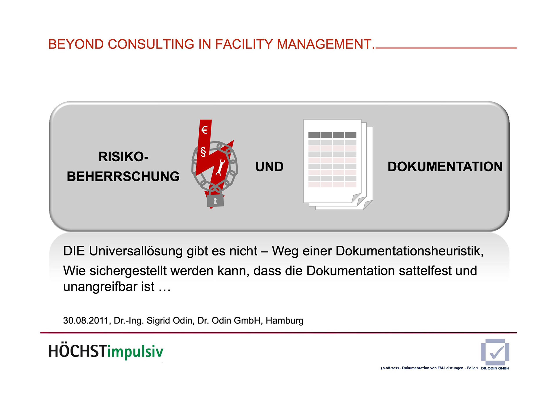 DIE Universallösung gibt es nicht – Weg einer Dokumentationsheuristik, Wie sichergestellt werden kann, dass die Dokumentation sattelfest und unangreifbar ist ... 30.08.2011, Dr.-Ing. Sigrid Odin, Dr. Odin GmbH, Hamburg
