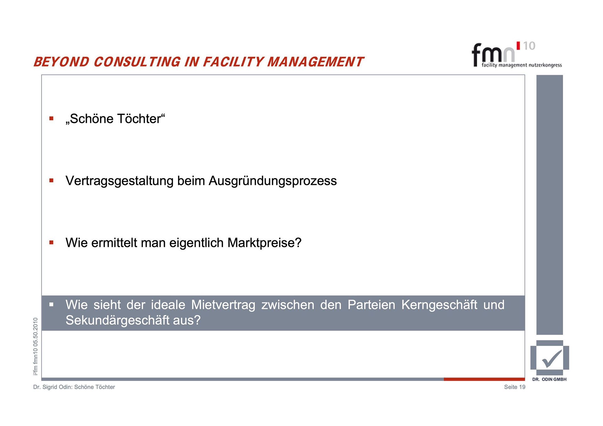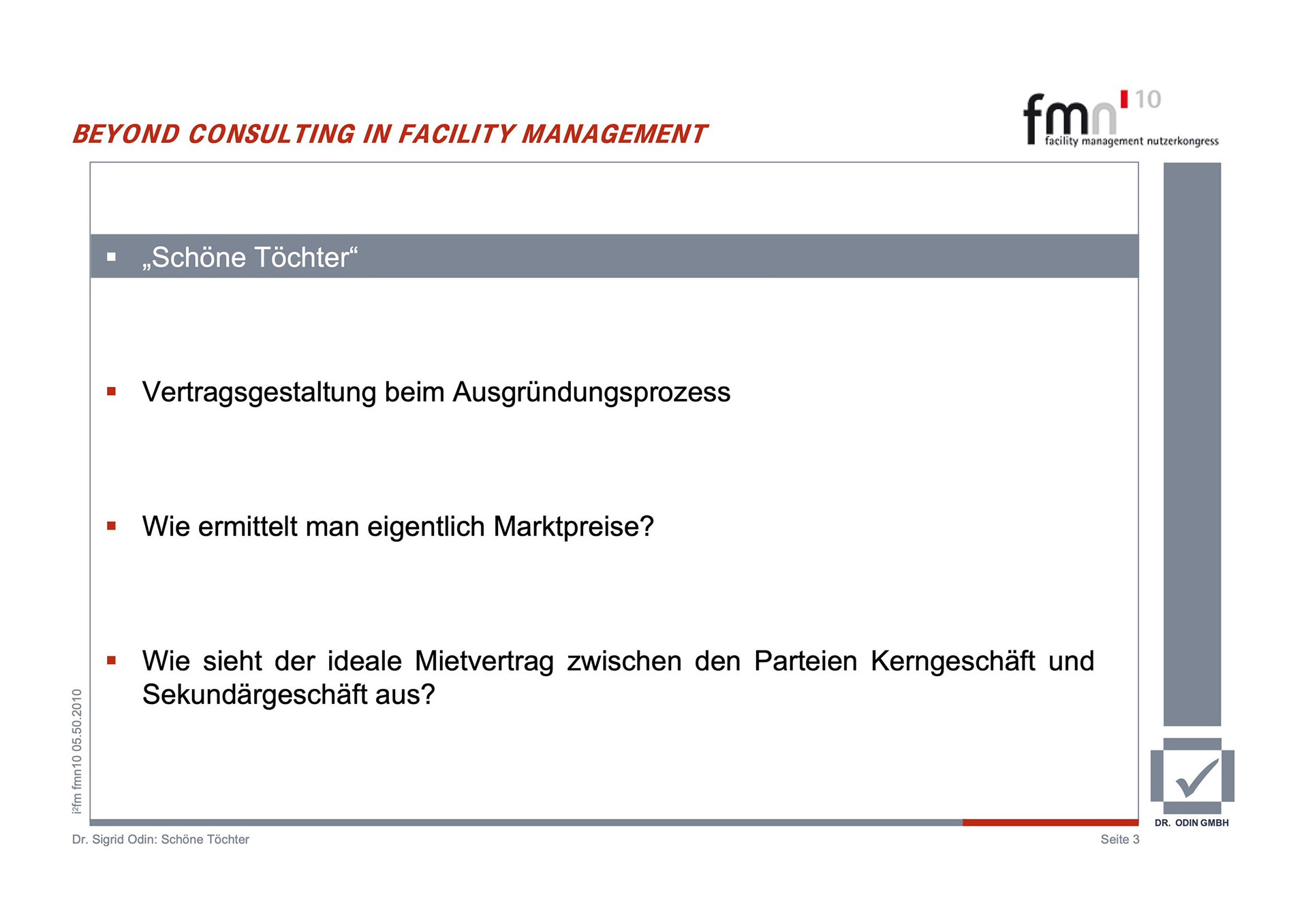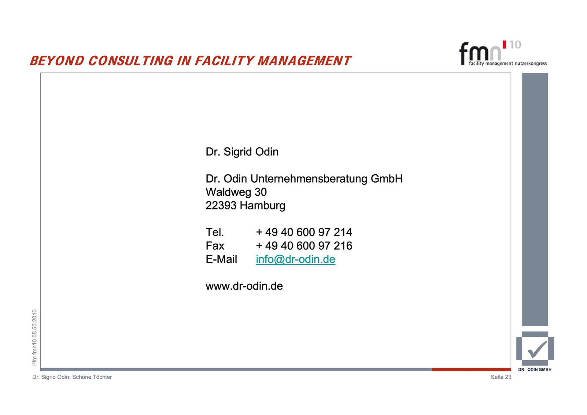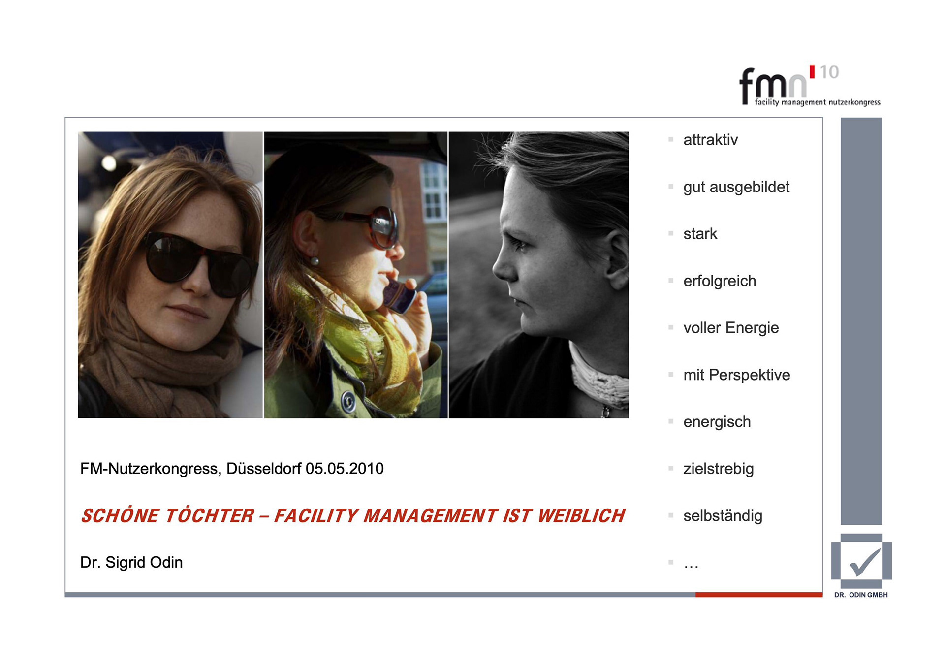 FM-Nutzerkongress, Düsseldorf 05.05.2010 SCHÖNE TÖCHTER – FACILITY MANAGEMENT IST WEIBLICH Dr. Sigrid Odin